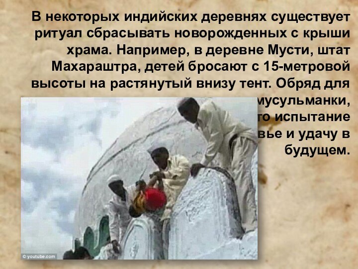 Слайд 24 В некоторых индийских деревнях существует ритуал сбрасывать новорожденных