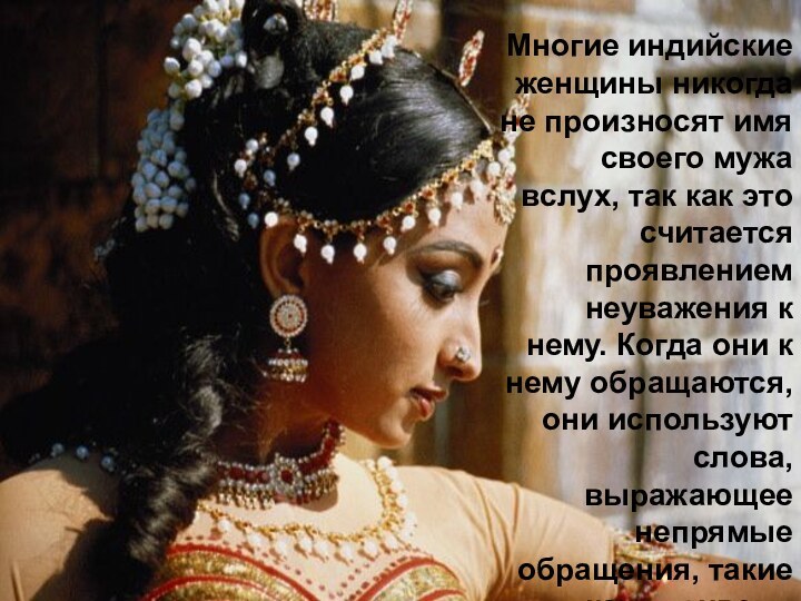 Слайд 9 Многие индийские женщины никогда не произносят имя своего