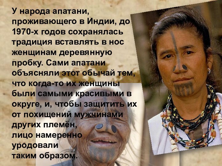Слайд 13 У народа апатани, проживающего в Индии, до 1970-х