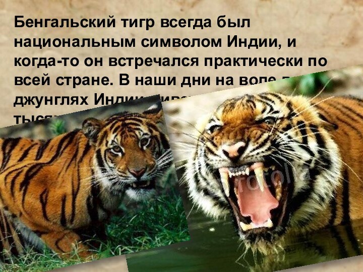 Слайд 20 Бенгальский тигр всегда был национальным символом Индии, и