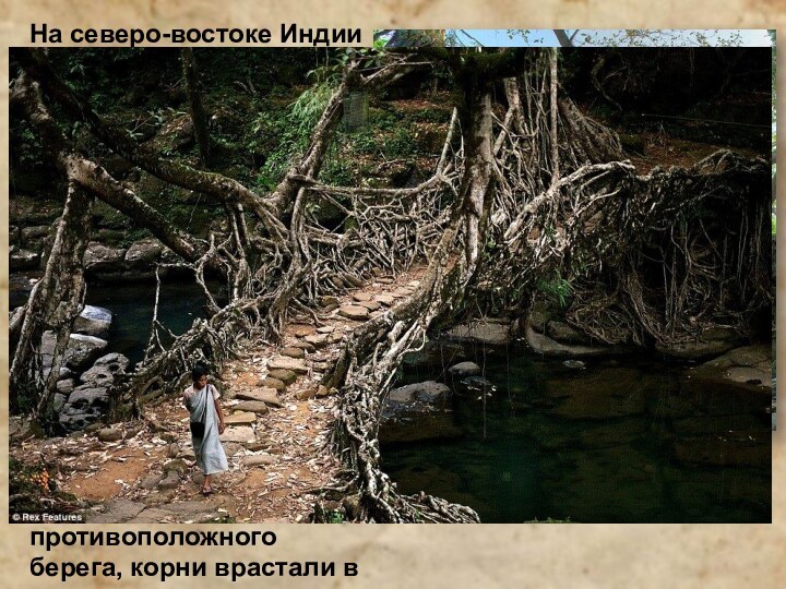 Слайд 7 На северо-востоке Индии издавна пользовались мостами, выросшими естественным