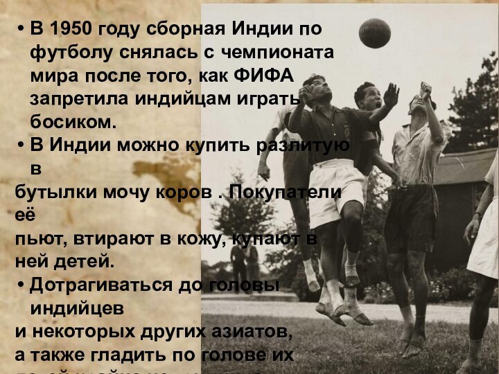 Слайд 5 В 1950 году сборная Индии по футболу снялась