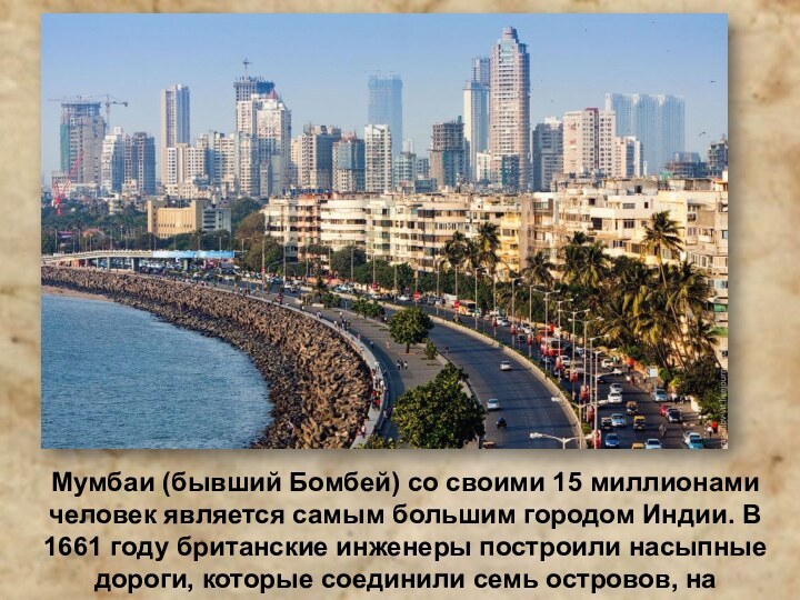 Слайд 6 Мумбаи (бывший Бомбей) со своими 15 миллионами человек