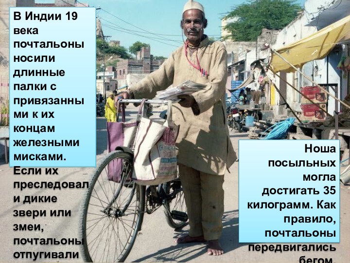 Слайд 17 В Индии 19 века почтальоны носили длинные палки