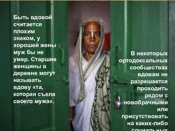 Слайд 10 Быть вдовой считается плохим знаком, у хорошей жены