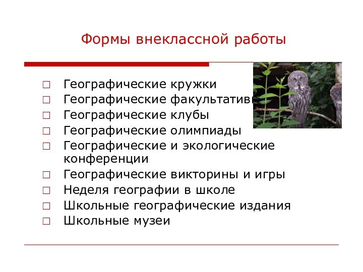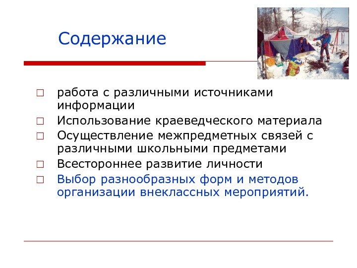 содержания и форм внеклассной работы Учет возрастных и индивидуальных особенностей