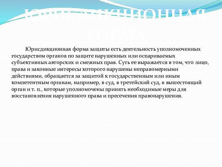 "объективная форма представления совокупности данных и команд, предназначенных для функционирования ЭВМ и других компьютерных устройств с целью получения определенного результата (включая подготовительные материалы, полученные в ходе разработки программы для ЭВМ, и порождаемые ею аудиовизуальные отображения)".Авторское право распространяется на любые программы, как выпущенные, так и не выпущенные в свет, представленные в объективной форме. Правовая охрана охватывает все виды программ, причём они могут быть выражены на любом языке и в любой форме. Но, при этом, правовая охрана не распространяется на идеи, принципы, методы, процессы, системы, способы, факты, открытия и концепции, лежащие в основе программы или какого-либо её элемента.