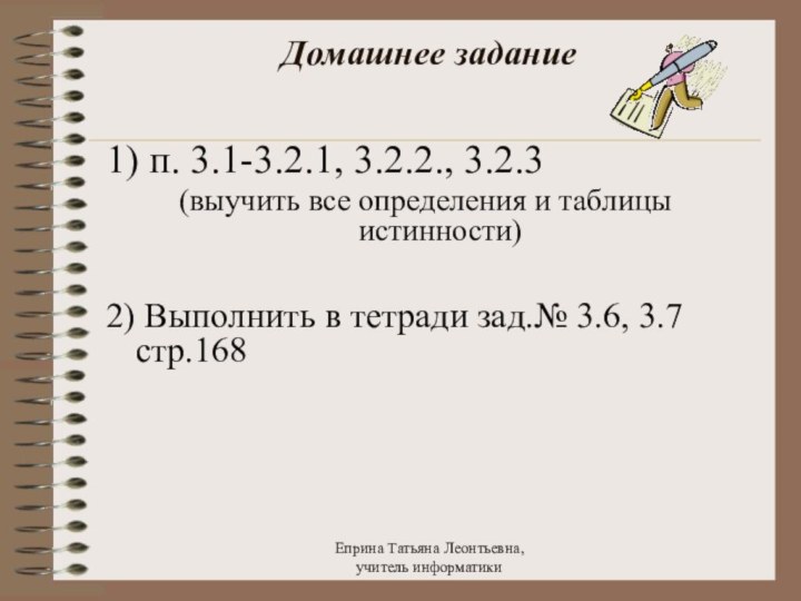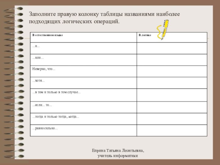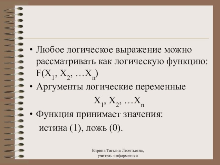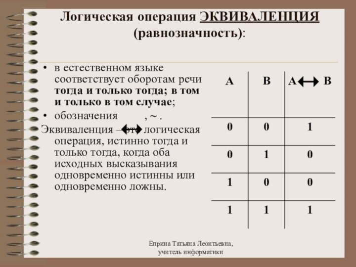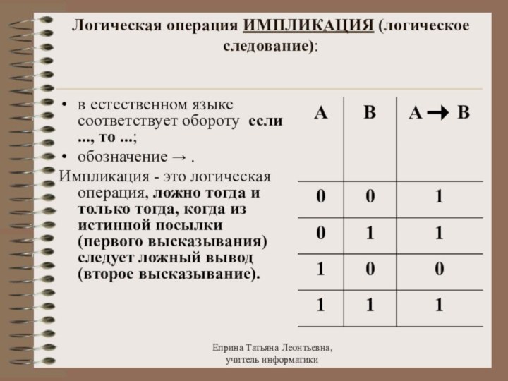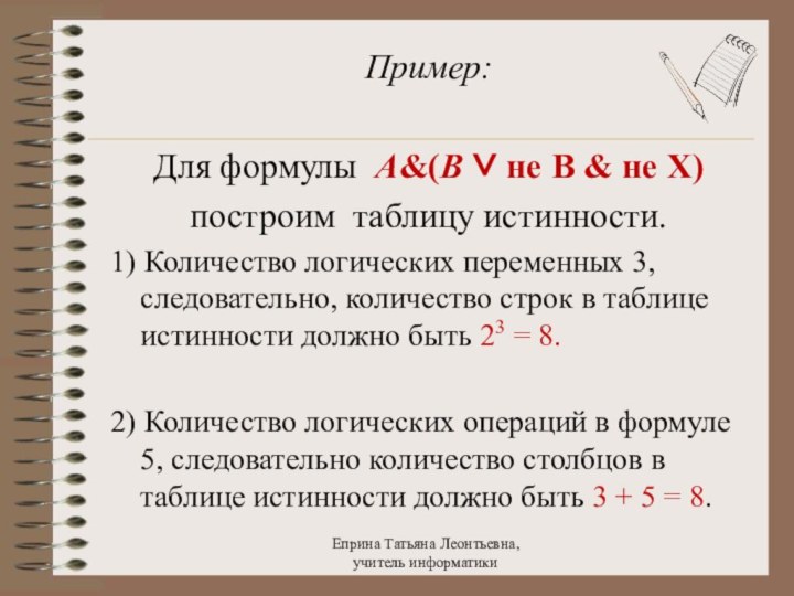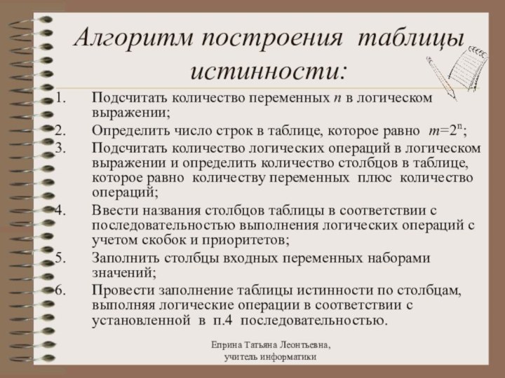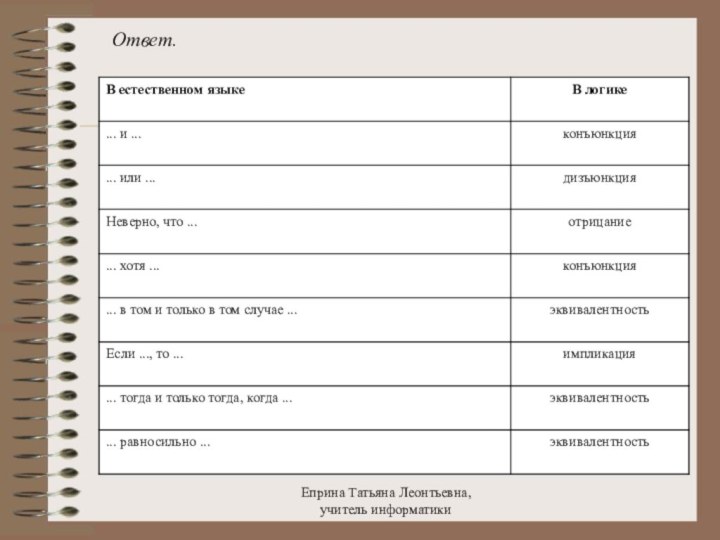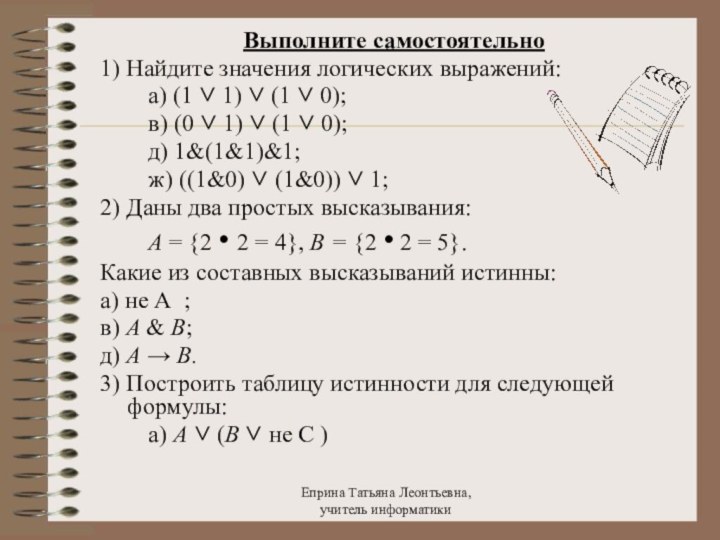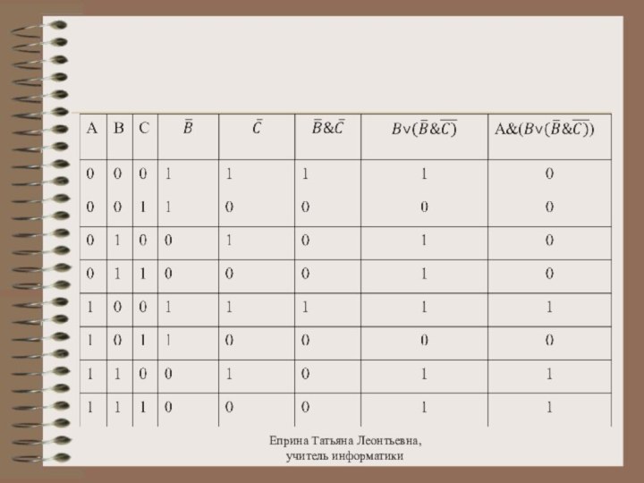 Определим теперь истинность составного высказывания, используя таблицы истинности логических операций: