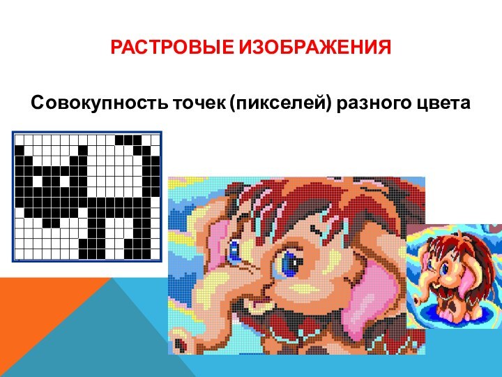РАСТРОВЫЕ ИЗОБРАЖЕНИЯСовокупность точек (пикселей) разного цвета