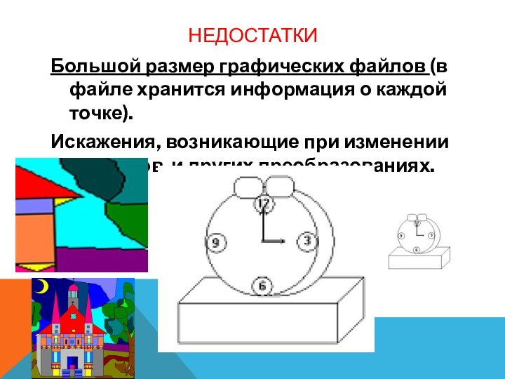 НЕДОСТАТКИБольшой размер графических файлов (в файле хранится информация о каждой точке).