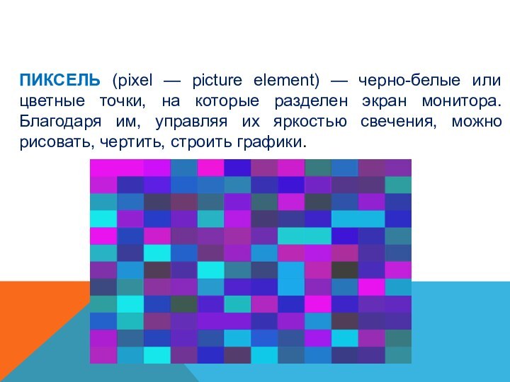 ПИКСЕЛЬ (pixel — picture element) — черно-белые или цветные точки, на