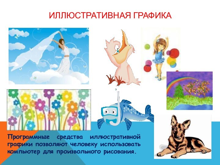 ИЛЛЮСТРАТИВНАЯ ГРАФИКАПрограммные средства иллюстративной графики позволяют человеку использовать компьютер для произвольного рисования.