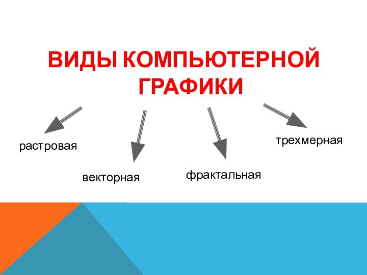 ВИДЫ КОМПЬЮТЕРНОЙ ГРАФИКИрастроваявекторнаяфрактальнаятрехмерная