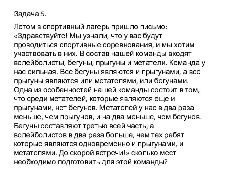 Задача 5. Летом в спортивный лагерь пришло письмо: «Здравствуйте! Мы узнали,