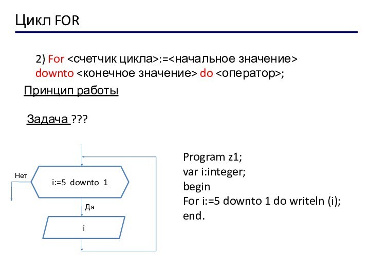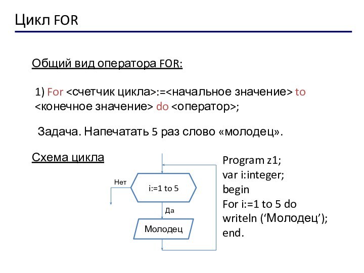 For i:=1 to 5 do