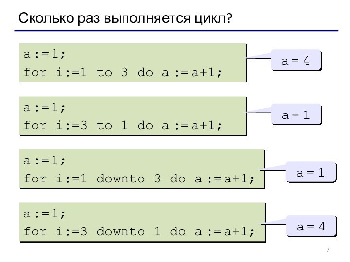 for i:=3 downto 1 do a := a+1;