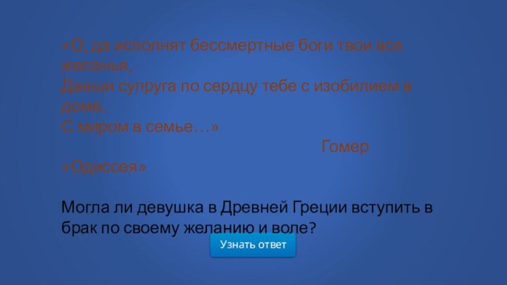 Могла ли девушка в Древней Греции вступить в брак по своему желанию и воле?