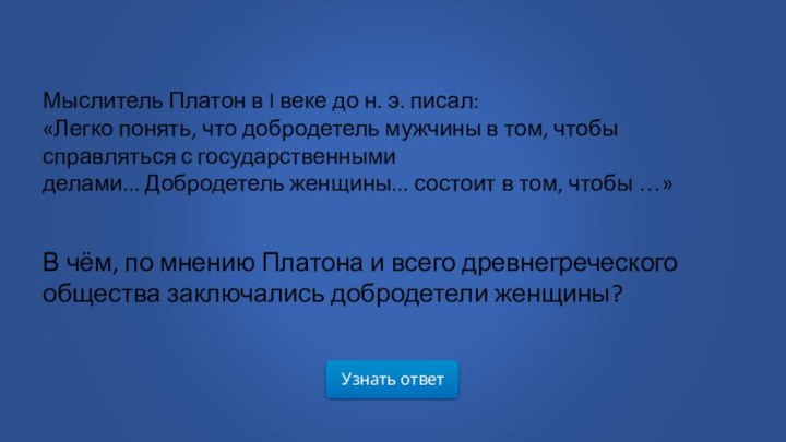 В чём, по мнению Платона и всего древнегреческого общества заключались добродетели женщины?