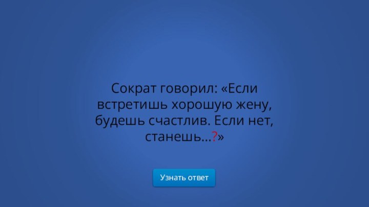 Сократ говорил: «Если встретишь хорошую жену, будешь
