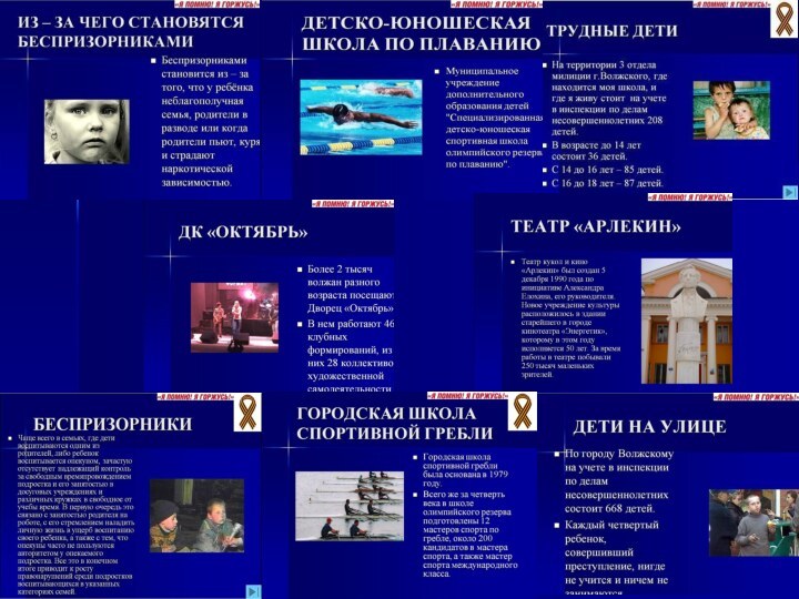 фестивале ученических проектов. В нем рассказывается о детях города Волжского, которые просто так гуляют по улицам и «прожигают» жизнь. В моем проекте были сведения о том, сколько в Волжском несовершеннолетних преступников и какие преступления они совершают.