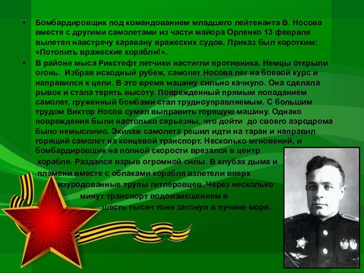 Слайд 6 Бомбардировщик под командованием младшего лейтенанта В. Носова вместе
