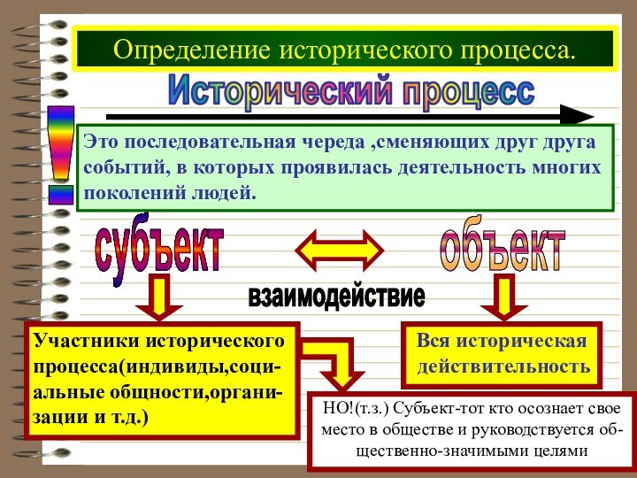 друг друга событий, в которых проявилась деятельность многих поколений людей. ! субъект объект