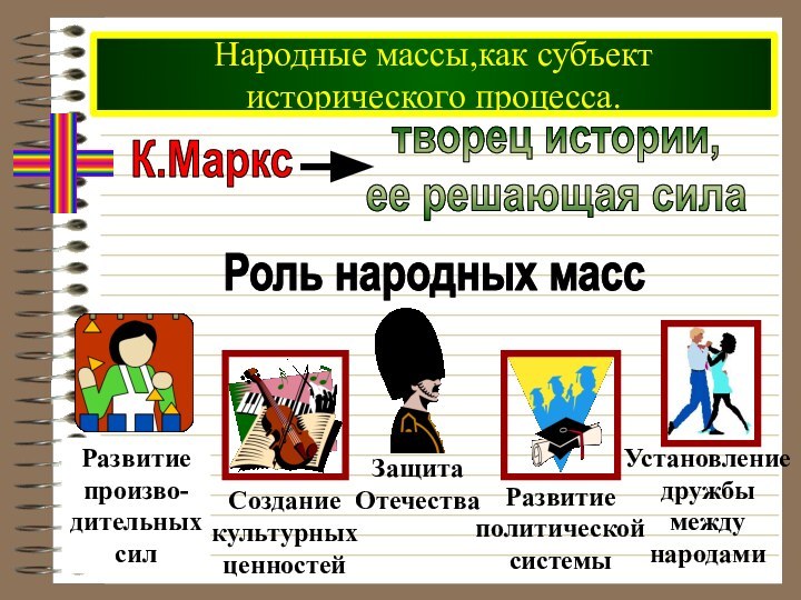Народные массы,как субъект исторического процесса. К.Маркс творец истории, ее решающая
