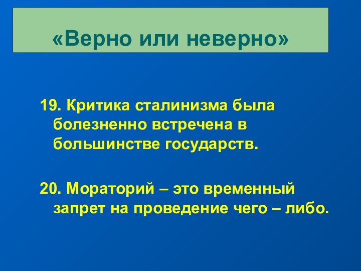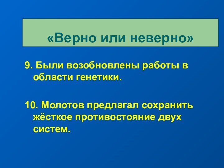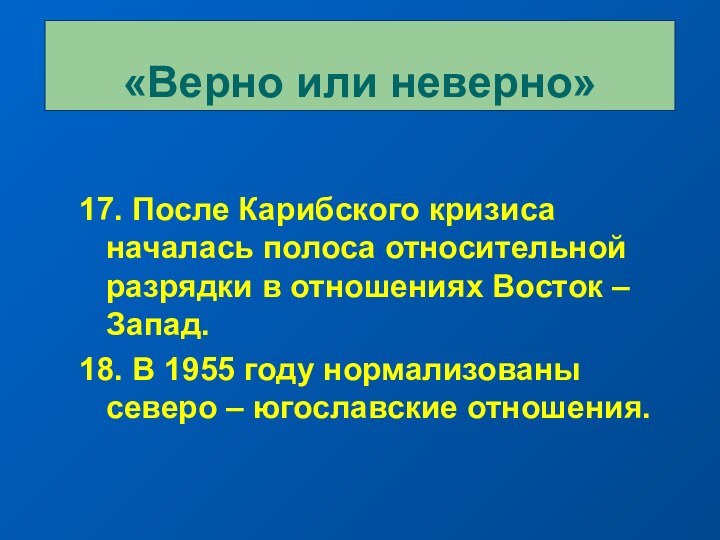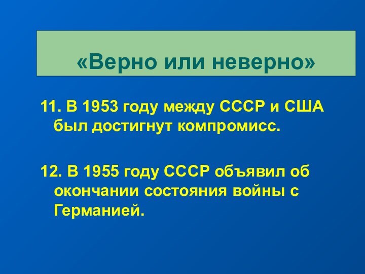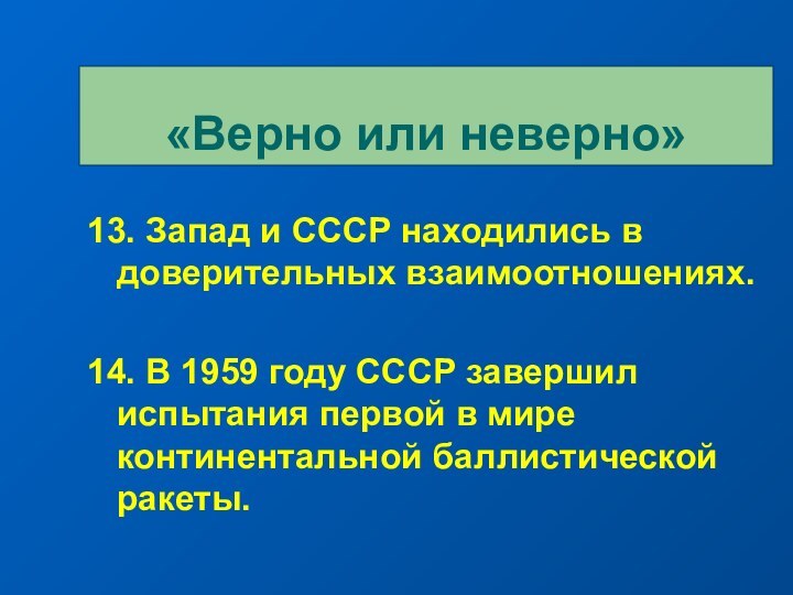 13. Запад и СССР находились в доверительных взаимоотношениях.