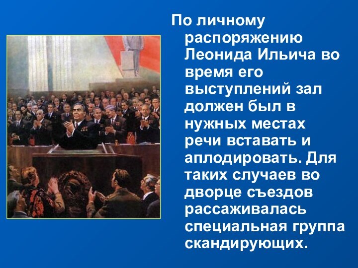 и аплодировать. Для таких случаев во дворце съездов рассаживалась специальная группа скандирующих.