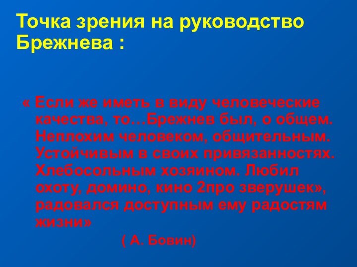 иметь в виду человеческие качества, то…Брежнев был, о общем.