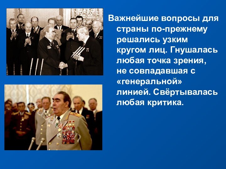 Важнейшие вопросы для страны по-прежнему решались узким кругом