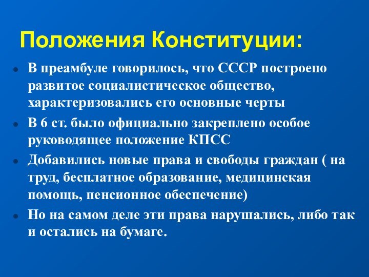 Но на самом деле эти права нарушались, либо так и остались на бумаге.