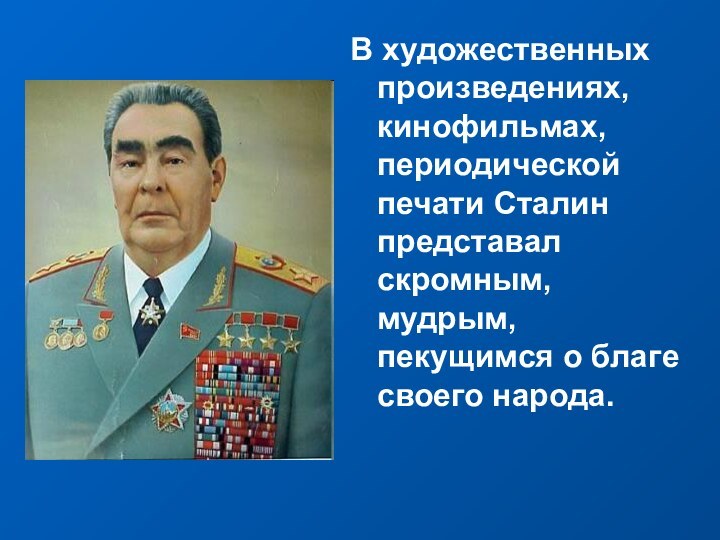 В художественных произведениях, кинофильмах, периодической печати Сталин представал