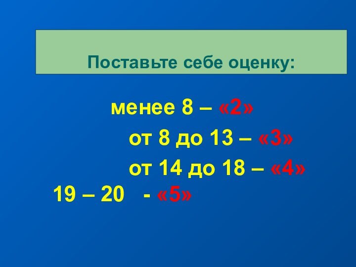 ( в каждом ряду по 4 вопроса, всего 5 рядов)