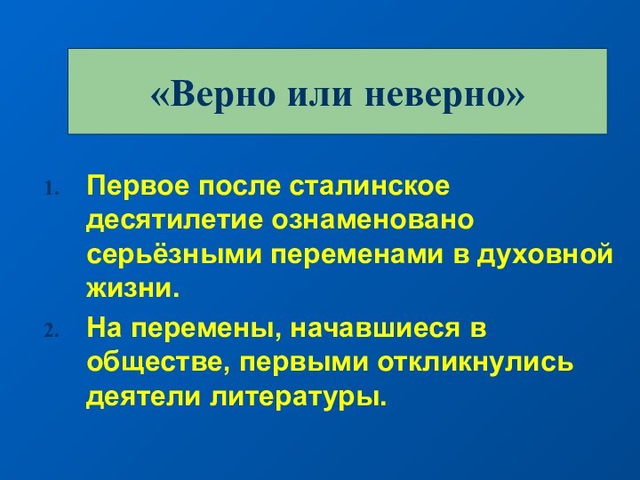 Первое после сталинское десятилетие ознаменовано серьёзными переменами в