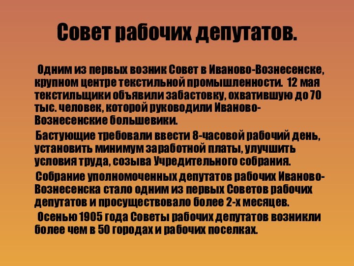 возник Совет в Иваново-Вознесенске, крупном центре текстильной промышленности. 12