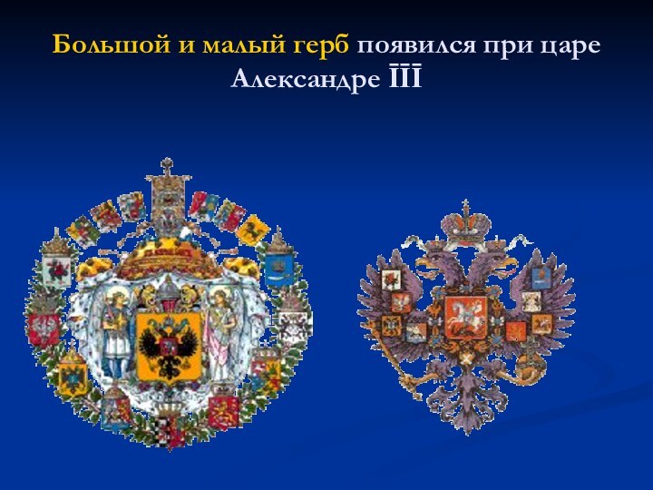 Большой и малый герб появился при царе Александре ῙῙῙ