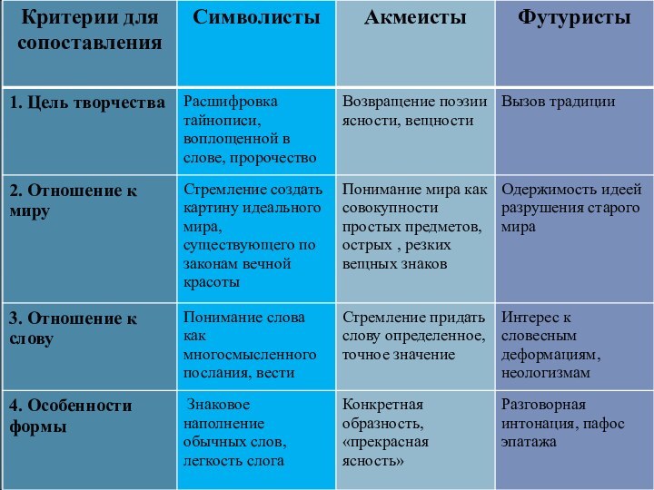 наполнение слов, красок, звуков глубинным, символическим смыслом;