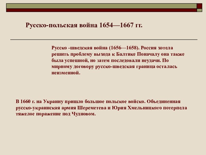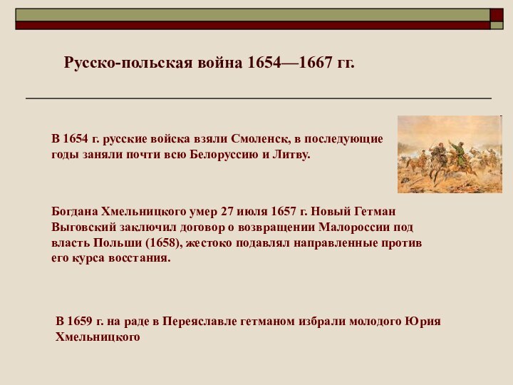 Слайд 6 Русско-польская война 1654—1667 гг.