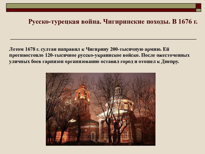 Слайд 11 Русско-турецкая война. Чигиринские походы. В 1676 г.