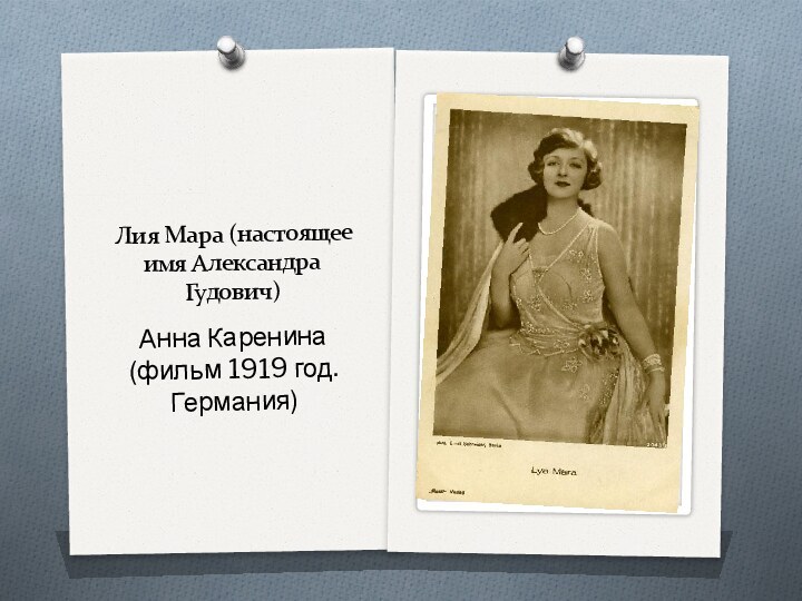 Лия Мара (настоящее имя Александра Гудович)Анна Каренина (фильм 1919 год. Германия)