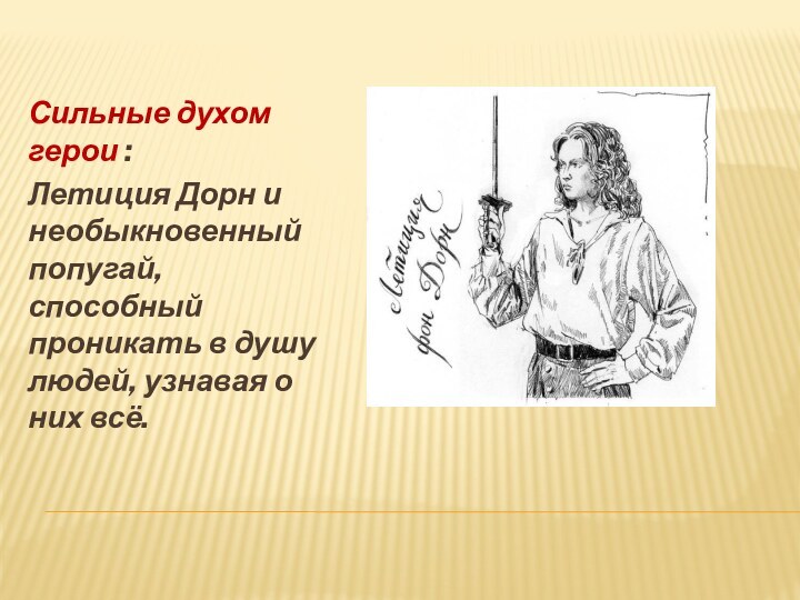 Сильные духом герои :Летиция Дорн и необыкновенный попугай, способный проникать в