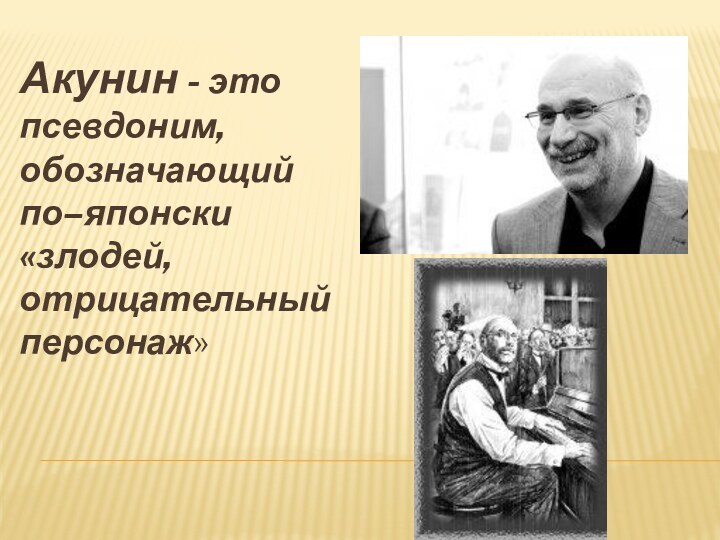 Слайд 3 Акунин - это псевдоним, обозначающий по–японски «злодей, отрицательный