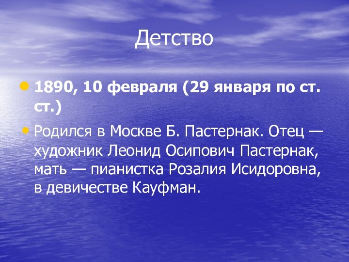 Детство1890, 10 февраля (29 января по ст. ст.)Родился в Москве Б.