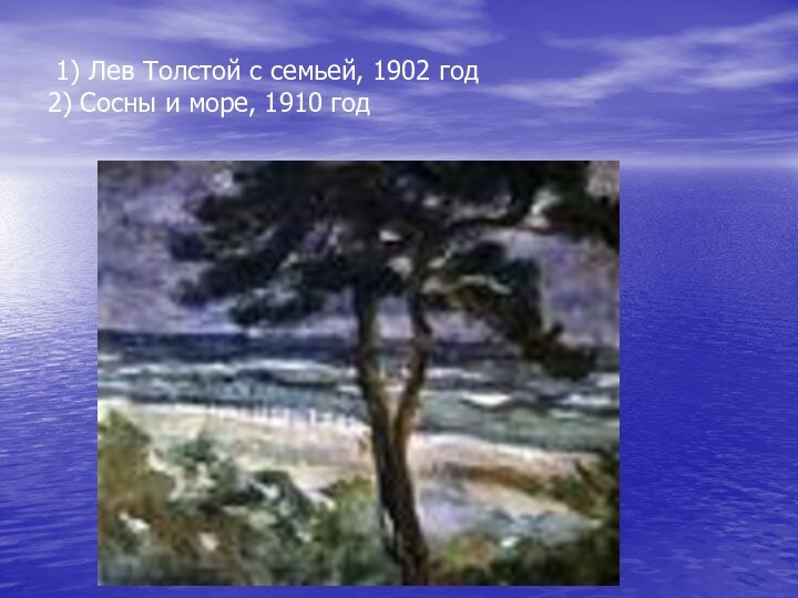 1) Лев Толстой с семьей, 1902 год 2) Сосны и море, 1910 год