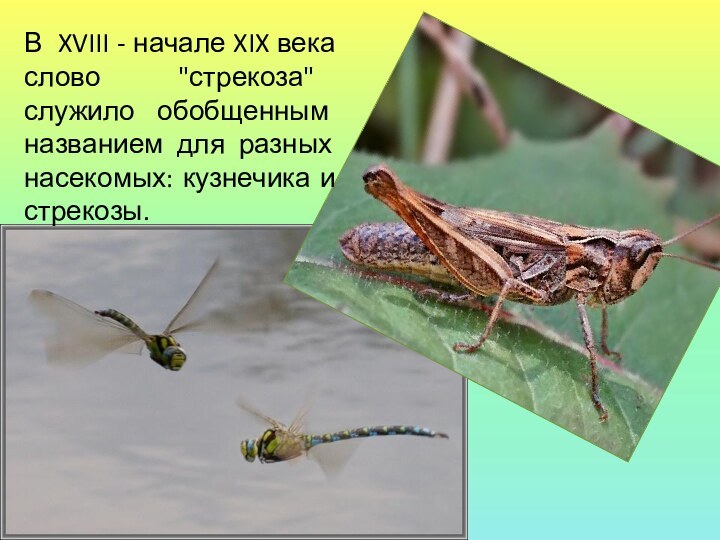 Слайд 30 В XVIII - начале XIX века слово "стрекоза"