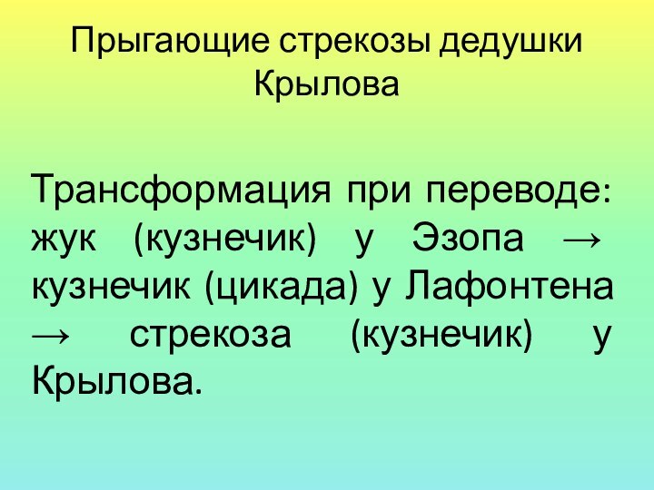 Прыгающие стрекозы дедушки Крылова Трансформация при переводе: жук (кузнечик) у Эзопа