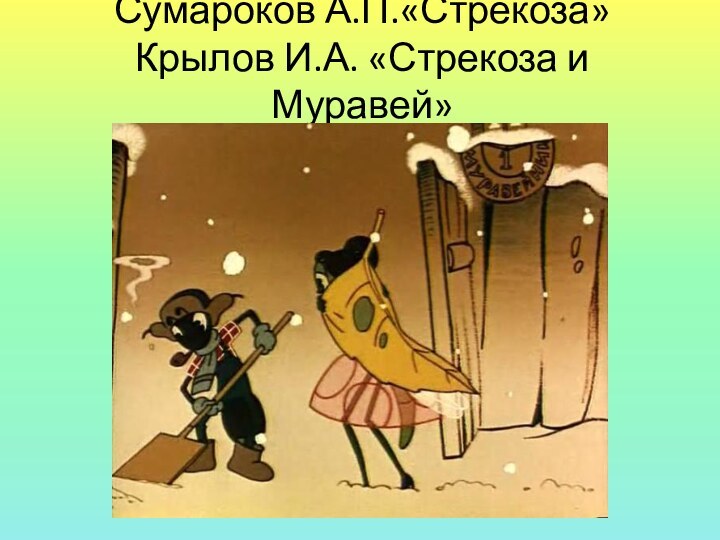 Слайд 28 Сумароков А.П.«Стрекоза» Крылов И.А. «Стрекоза и Муравей»