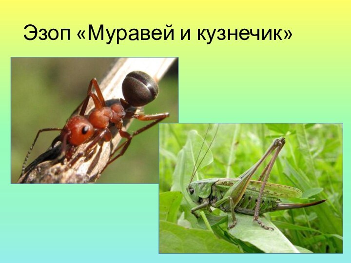 Слайд 26 Эзоп «Муравей и кузнечик»