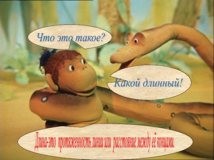 Какой длинный! Что это такое? Длина-это протяженность линии или расстояние между её концами.